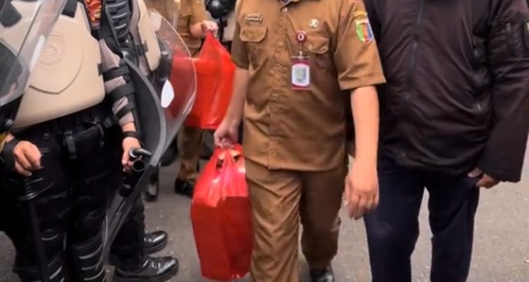 BANDAR LAMPUNG – Ada pemandangan berbeda dalam aksi unjuk rasa ribuan
