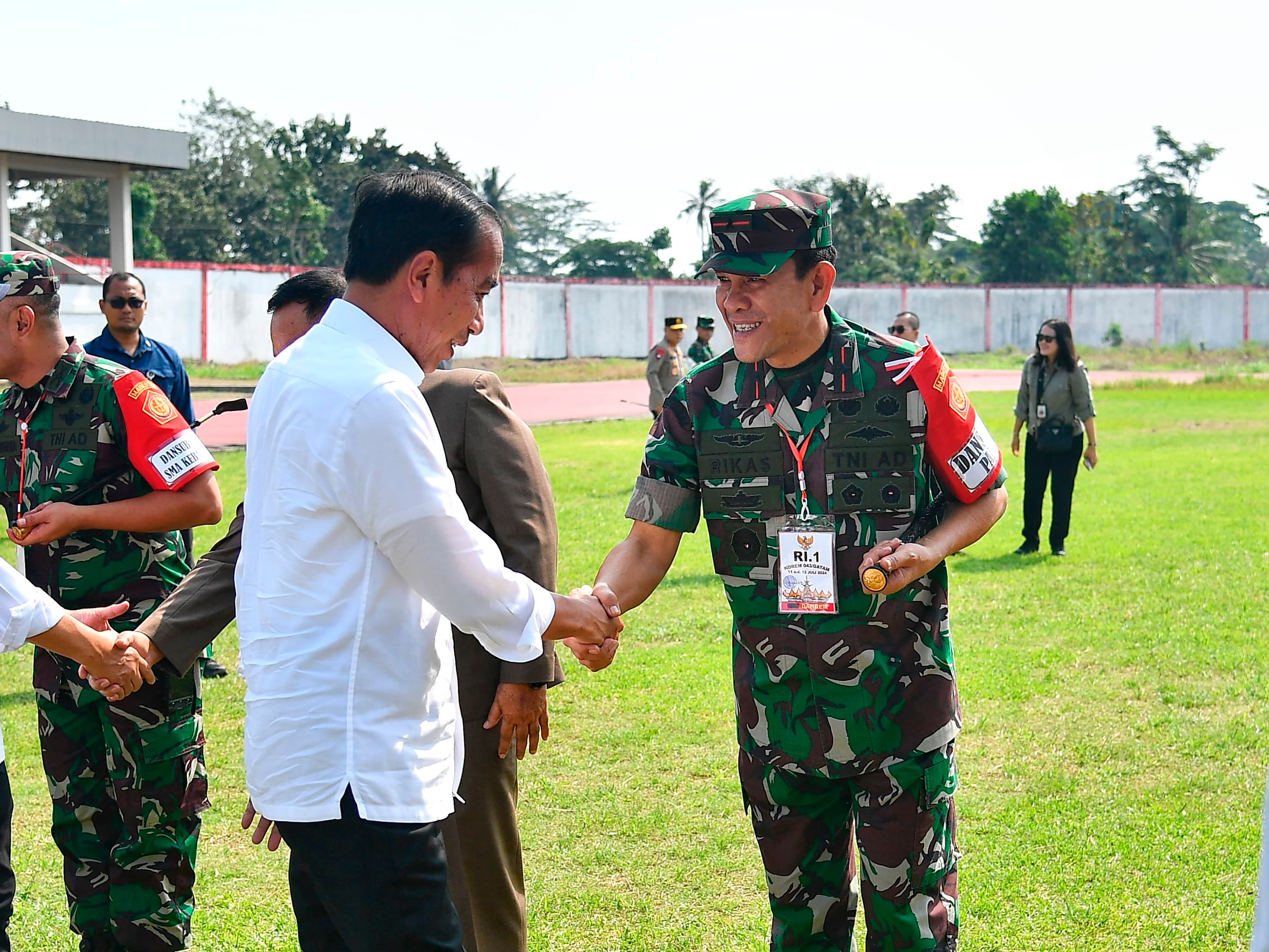 Lampung – Komandan Korem 043/Gatam Brigjen TNI Rikas Hidayatullah, S.E., M.M., bersama Pangdam II/Sriwijaya, Mayjen TNI M. Naudi Nurdika, S.I.P., M.Si., M.Tr(Han)., mendampingi sekaligus mengamankan kunjungan kerja Presiden Joko Widodo di wilayah Provinsi Lampung. Kamis (11/07/2024).