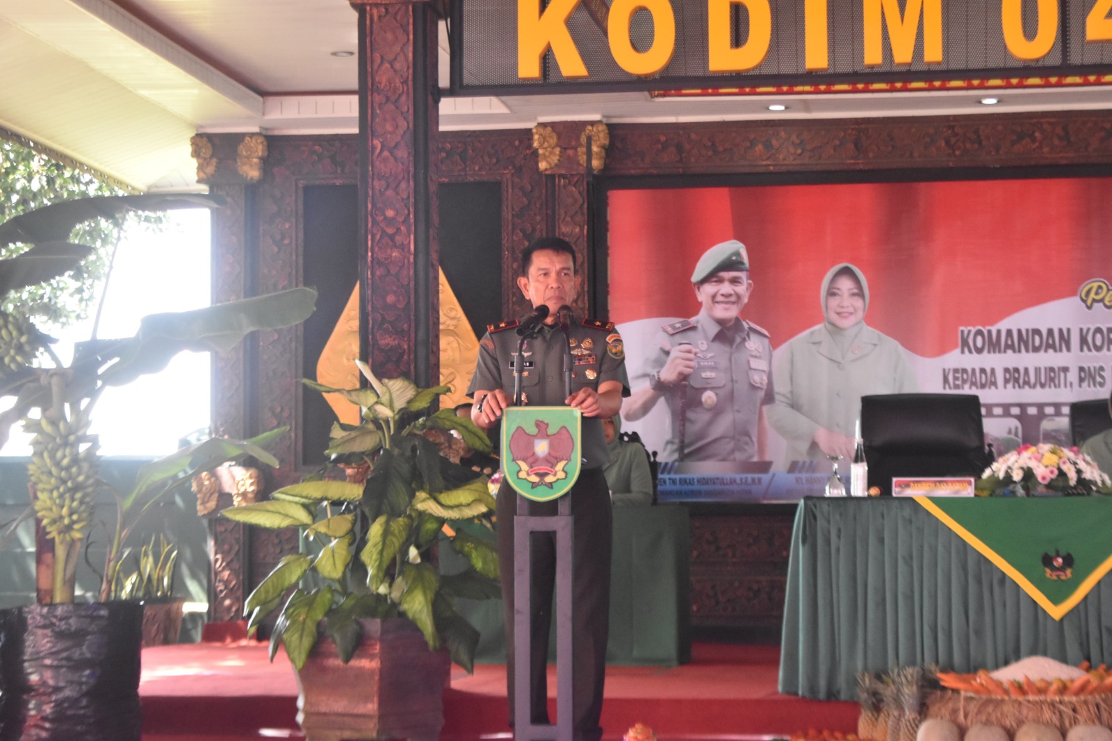 Lampung – Komandan Korem 043/Gatam Brigjen TNI Rikas Hidayatullah, S.E., M.M., didampingi Ketua Persit Kartika Chandra Kirana Koorcab Rem 043 PD II/Swj Ny. Hanny Rikas Hidayatullah, beserta rombongan melaksanakan kunjungan kerja di Kodim 0411/KM, yang berada di Jl. Veteran, Kelurahan Hadimulyo Barat, Kecamatan Metro Pusat, Kota Metro. Kamis (25/07/2024).