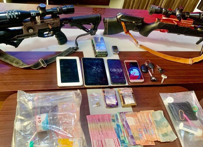 Meski tak banyak sabu yang didapatkan, namun dari salah satu rumah bandar narkoba polisi mendapatkan banyak senjata tajam jenis golok hingga samurai serta dua senapan angin kaliber 4,5mm.