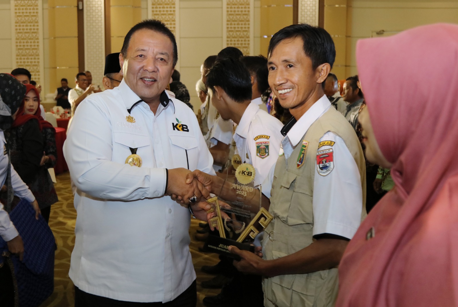TANGGAMUS – KPB Award sebagai Juara Kabupaten Terbaik Sarana prasarana program KP ini diserahkan langsung oleh Gubernur Lampung Arinal Djunaidi kepada Penjabat Bupati Tanggamus Ir. Irsan Mulyadi. MT. Pada acara Penganugerahan KPB Award 2023 di Swissbell Hotel, Bandar Lampung, Rabu (06/12/23).
