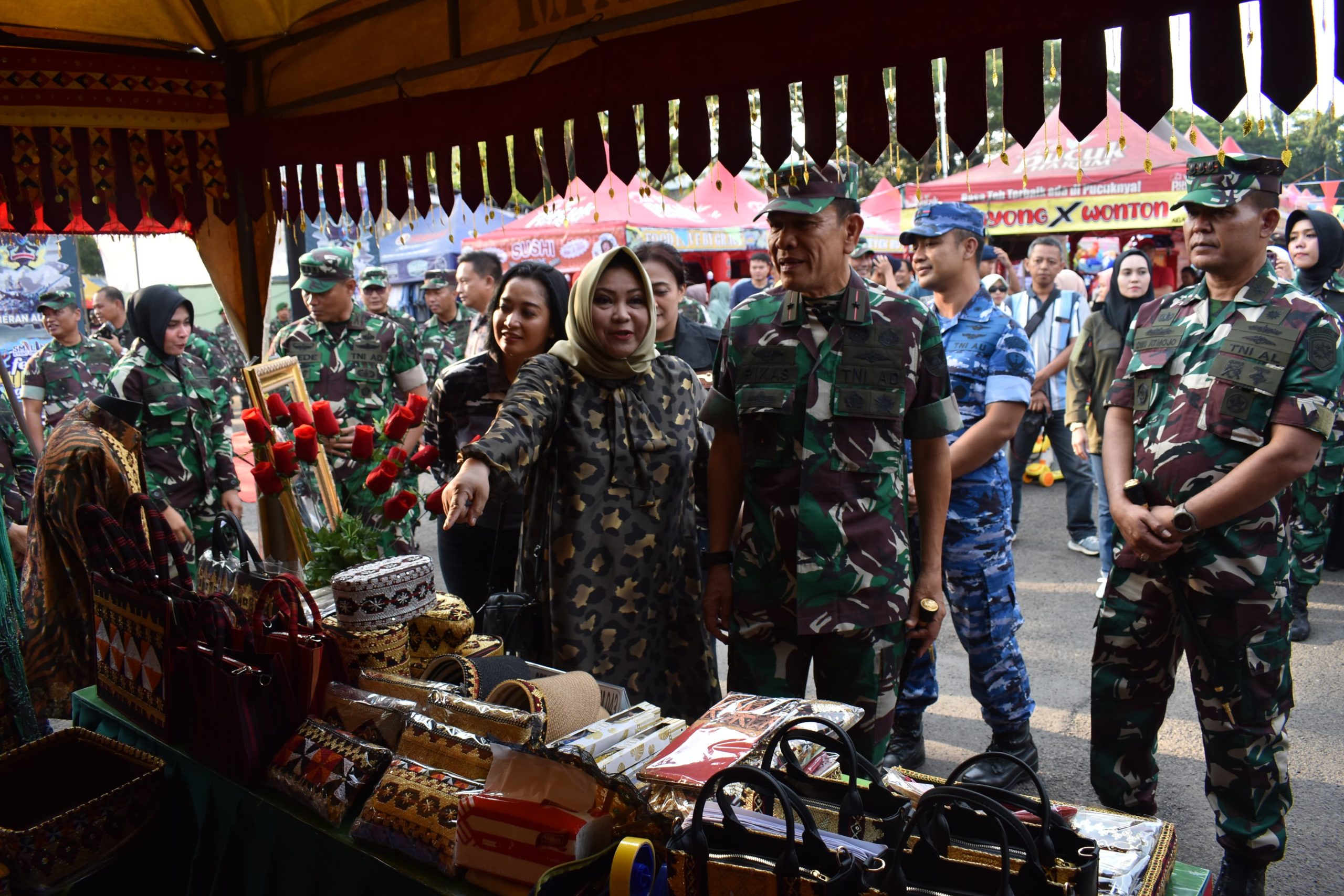 Usai melaksanakan pembukaan Pesta Rakyat, Danrem 043/Gatam bersama Ketua Persit Kartika Chandra Kirana Koorcab Rem 043 PD II/Swj, didampingi Kasrem 043/Gatam beserta Istri, Danlanal Lampung beserta Istri, Danlanud Pangeran M. Bunyamin beserta Istri dan Pasiintel Brigif 4 Mar/BS, mengecek stan Pesta Rakyat.