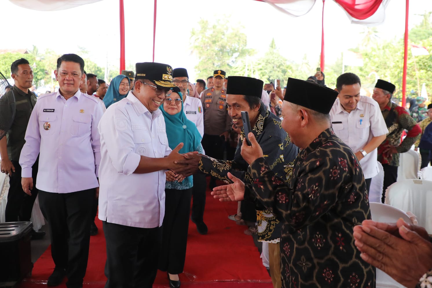 TULANG BAWANG BARAT – Pj. Gubernur Lampung Samsudin mencanangkan 7 Tiyuh sebagai Kampung Pancasila dan meresmikan Tugu Pancasila di Tiyuh Panaragan Jaya, Tulang Bawang Barat, Rabu (7-8-2024).
