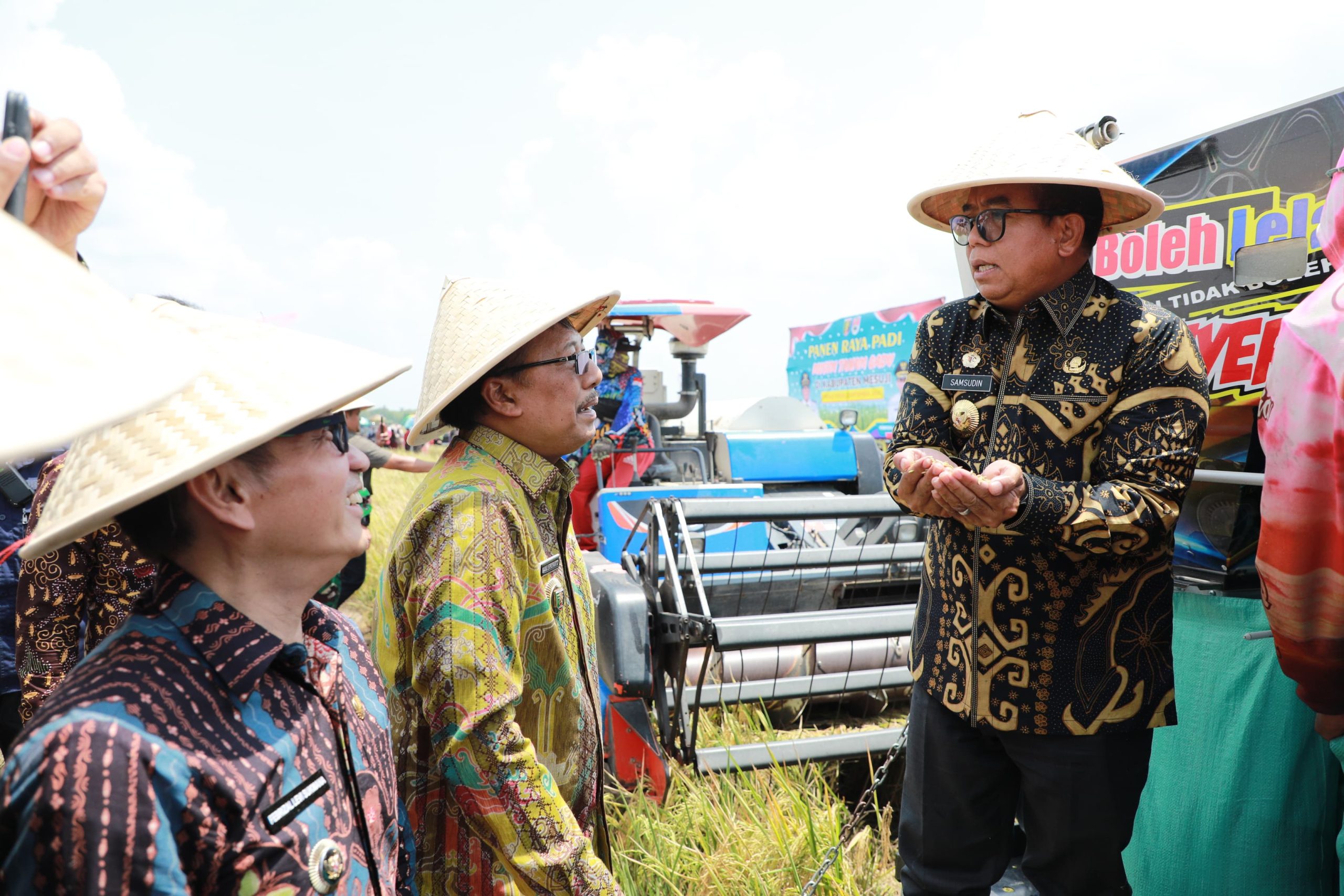 MESUJI —– Pj. Gubernur Lampung Samsudin bersama Pj. Ketua TP-PKK Provinsi Lampung Ibu Maidawati Retnoningsih Samsudin melaksanakan Panen Raya Padi Musim Tanam Gadu di Desa Wonosari, Kecamatan Mesuji Timur, Kamis (5/9/2024).