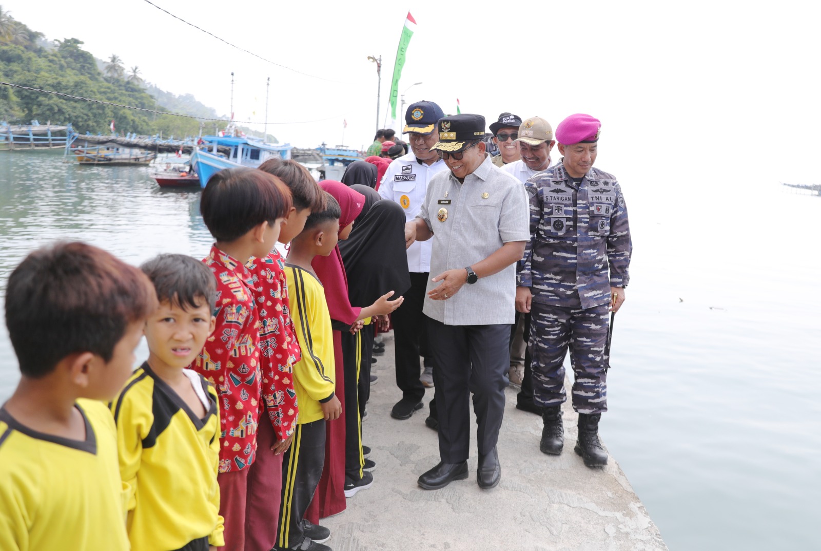 Pj. Gubernur Samsudin Serahkan Bantuan TJSL dari PT. PLN Lampung berupa Fasilitas Pilar Pendidikan kepada Masyarakat Pulau Legundi, Kabupaten Pesawaran
