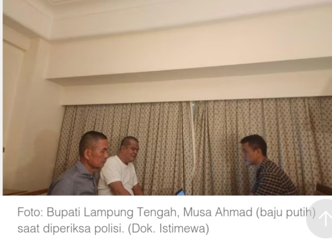 Lampung – Bupati Lampung Tengah Musa Ahmad tengah terseret kasus penipuan proyek sebesar Rp 2 miliar yang dilakukan oleh Erwin Saputra terhadap Harbiansyah. Kasus ini berujung dirinya diperiksa polisi di Polsek Gambir Polres Jakarta Pusat.