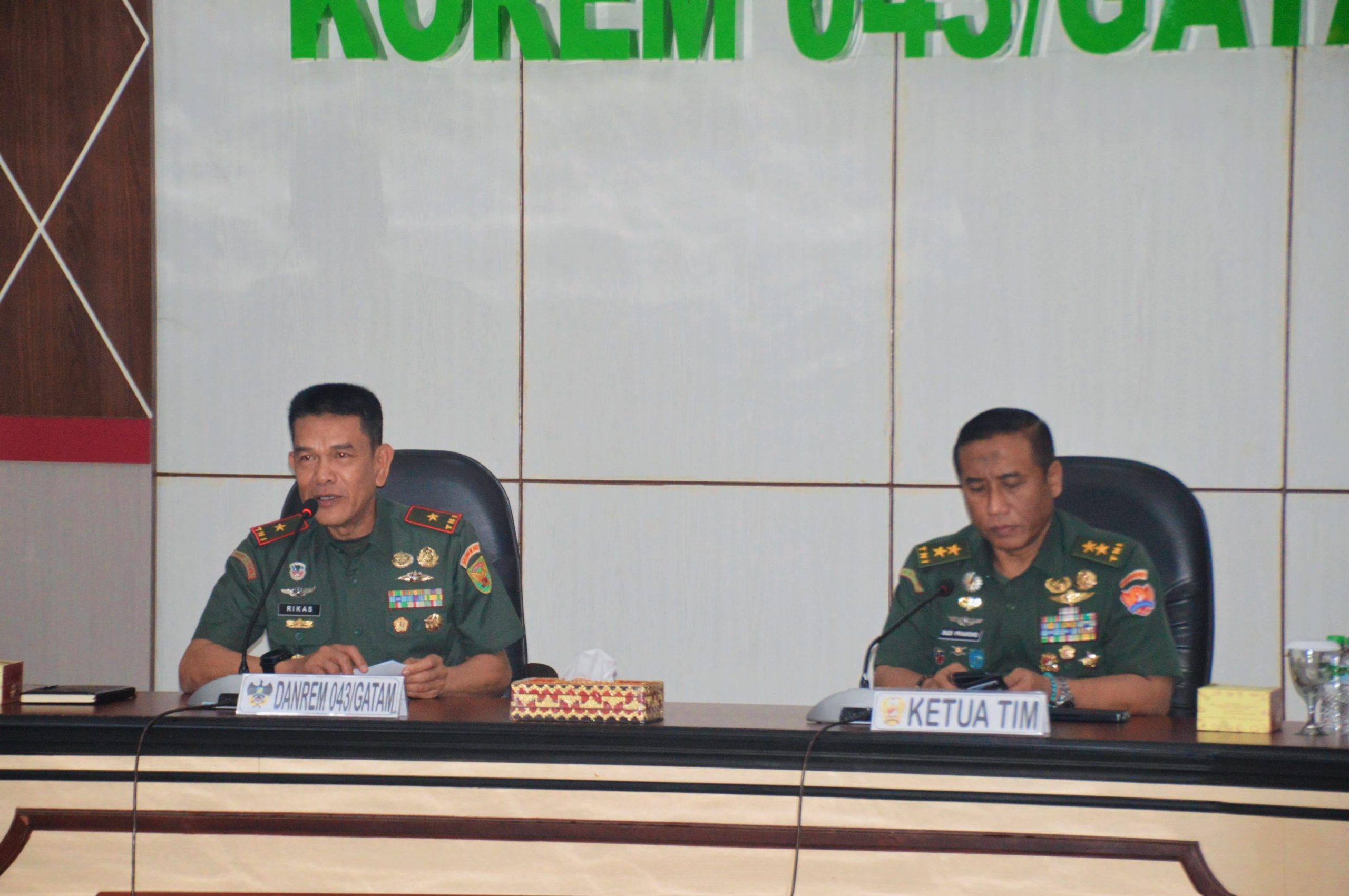 Dalam sambutannya, Danrem 043/Gatam Brigjen TNI Rikas Hidayatullah mengucapkan selamat datang kepada Tim Staf Ahli Kasad di Provinsi Lampung, Sang Bumi Ruwa Jurai.