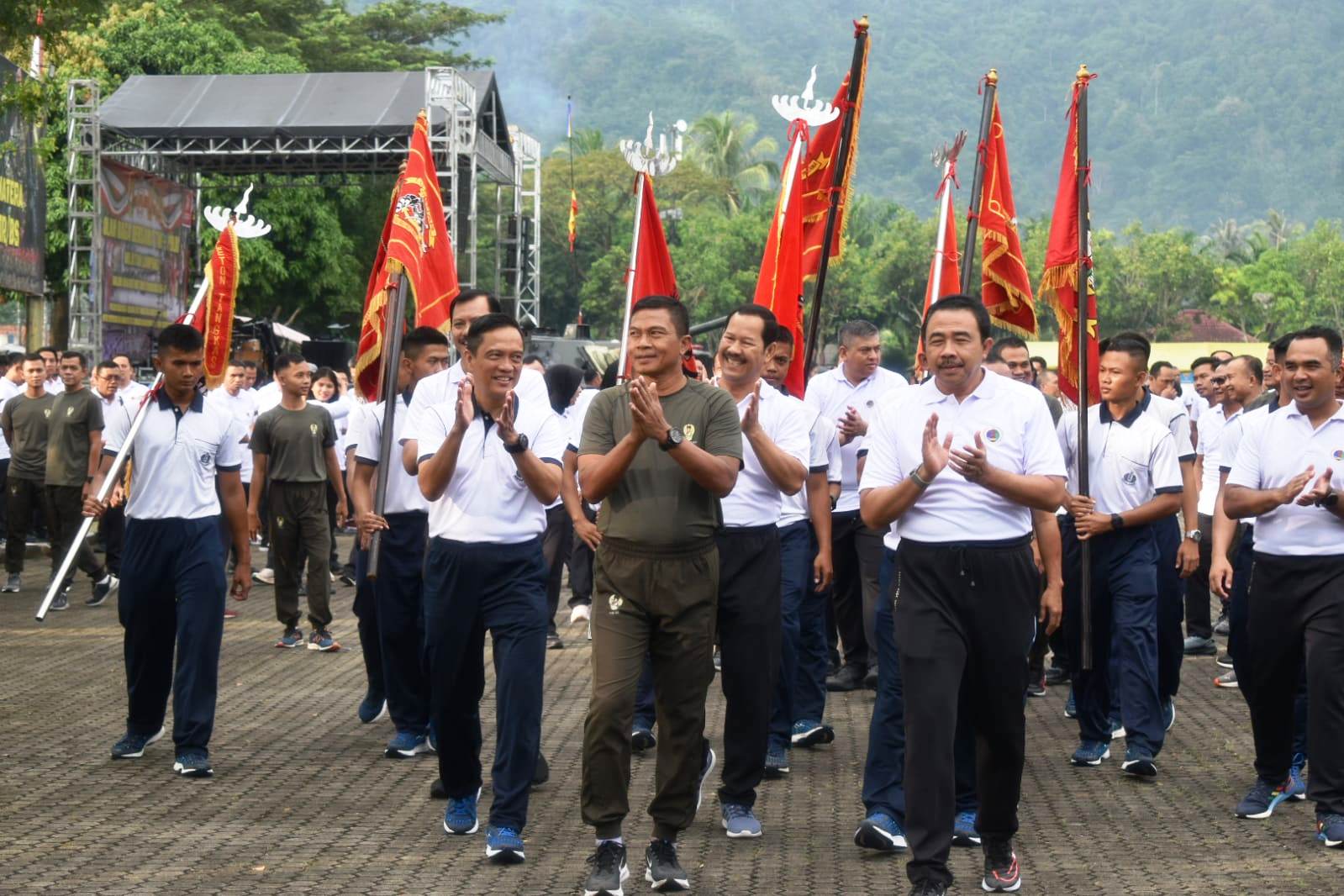 Kegiatan olahraga bersama yang dilaksanakan dalam rangka menyambut HUT Polri ke 77 dengan tema ” Polri Presisi Untuk Negeri, Pemilu Damai Untuk Indonesia Emas”, sekaligus mewujudkan sinergitas TNI – Polri, kegiatan tersebut dibuka dengan ramah tamah, selanjutnya seluruh Personel TNI-Polri melaksanakan peregangan dan melaksanakan senam SKJ ’88, dilanjutkan jalan sehat mengelilingi Area Mako Brigif.